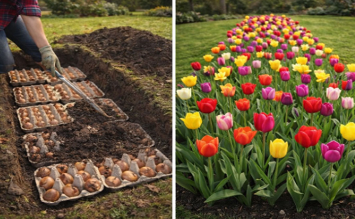 Plantarea bulbilor de lalele în cofraje de ouă – truc ingenios pentru o grădină plină de culoare